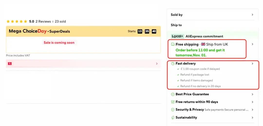 目前,速卖通英国海外托管“次日达”物流服务已经上线,并已覆盖英格兰及威尔士区域。